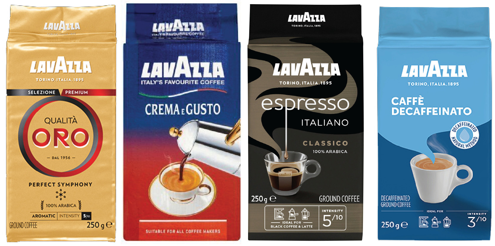 | Lavazza Ground Coffee | 250g / 500g tins | Retail stores, hotels, gift packs |